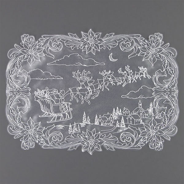 Ce magnifique napperon est fait de dentelle blanche très fine brodé sur un organza blanc neige