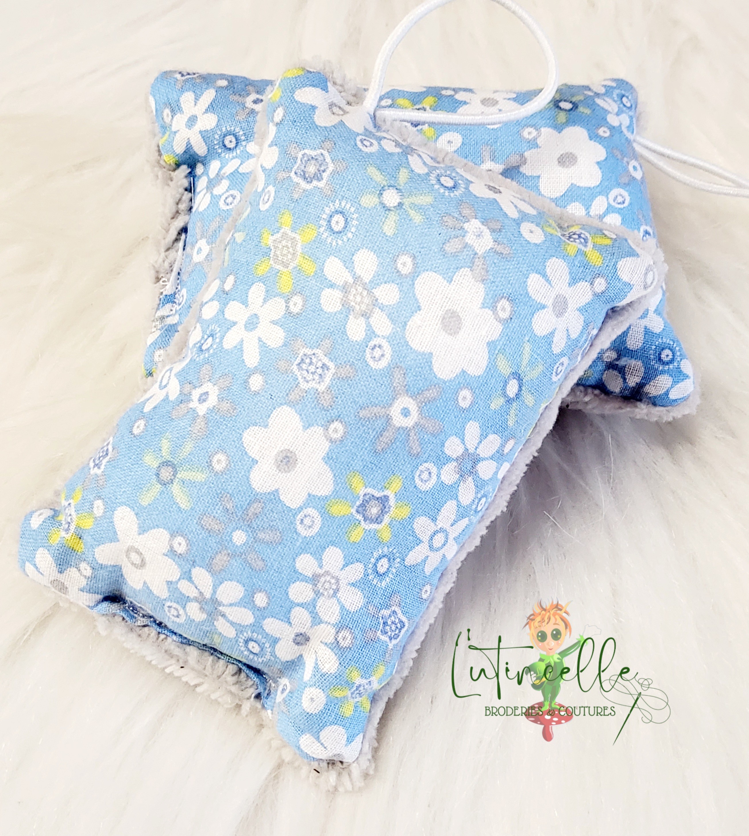 - Composition : Une face en éponge de bambou ultra-absorbante, une face en coton imprimé (fleurs ou pois) et un rembourrage moelleux en ouate.